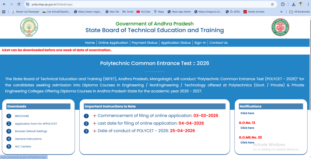 1. అధికారిక వెబ్‌సైట్‌ను సందర్శించండి: ముందుగా polycetap.nic.in లేదా polycetap.ap.gov.in కు వెళ్లండి.